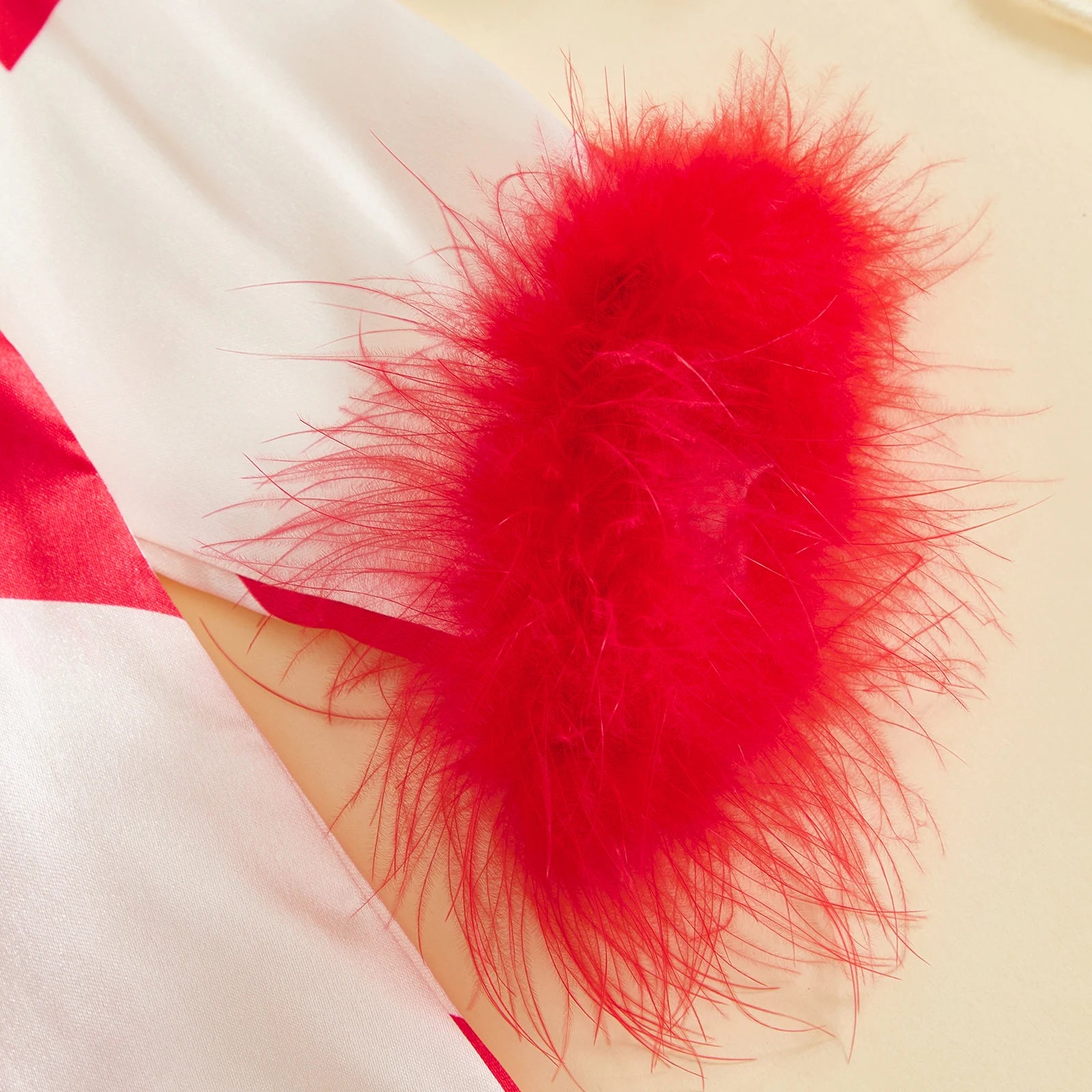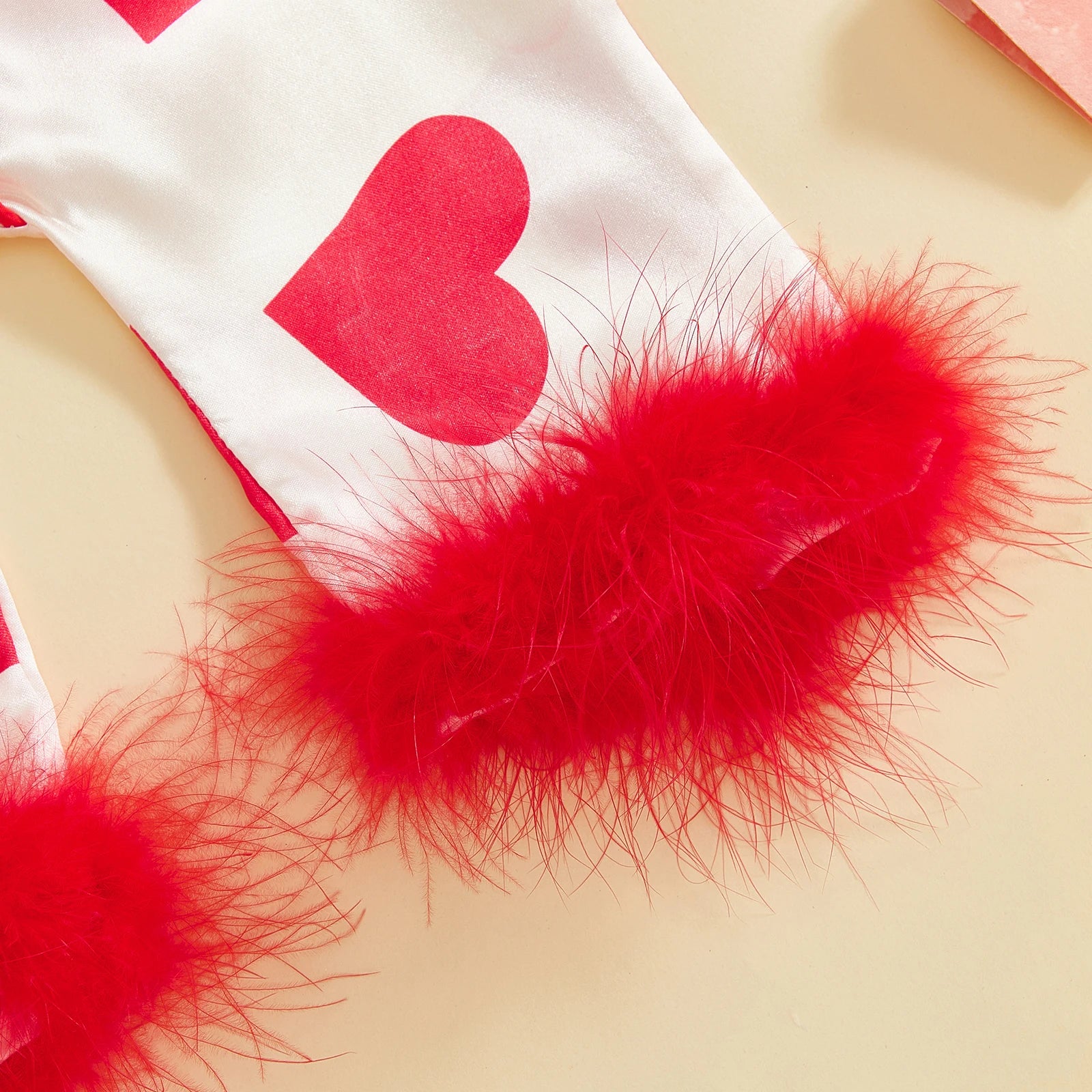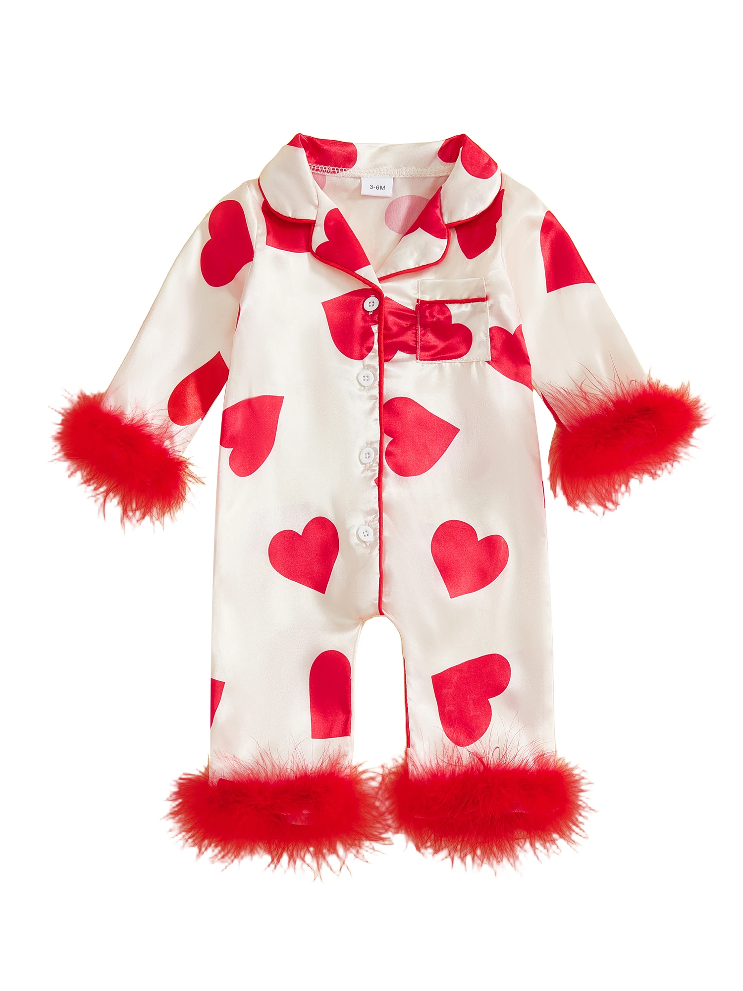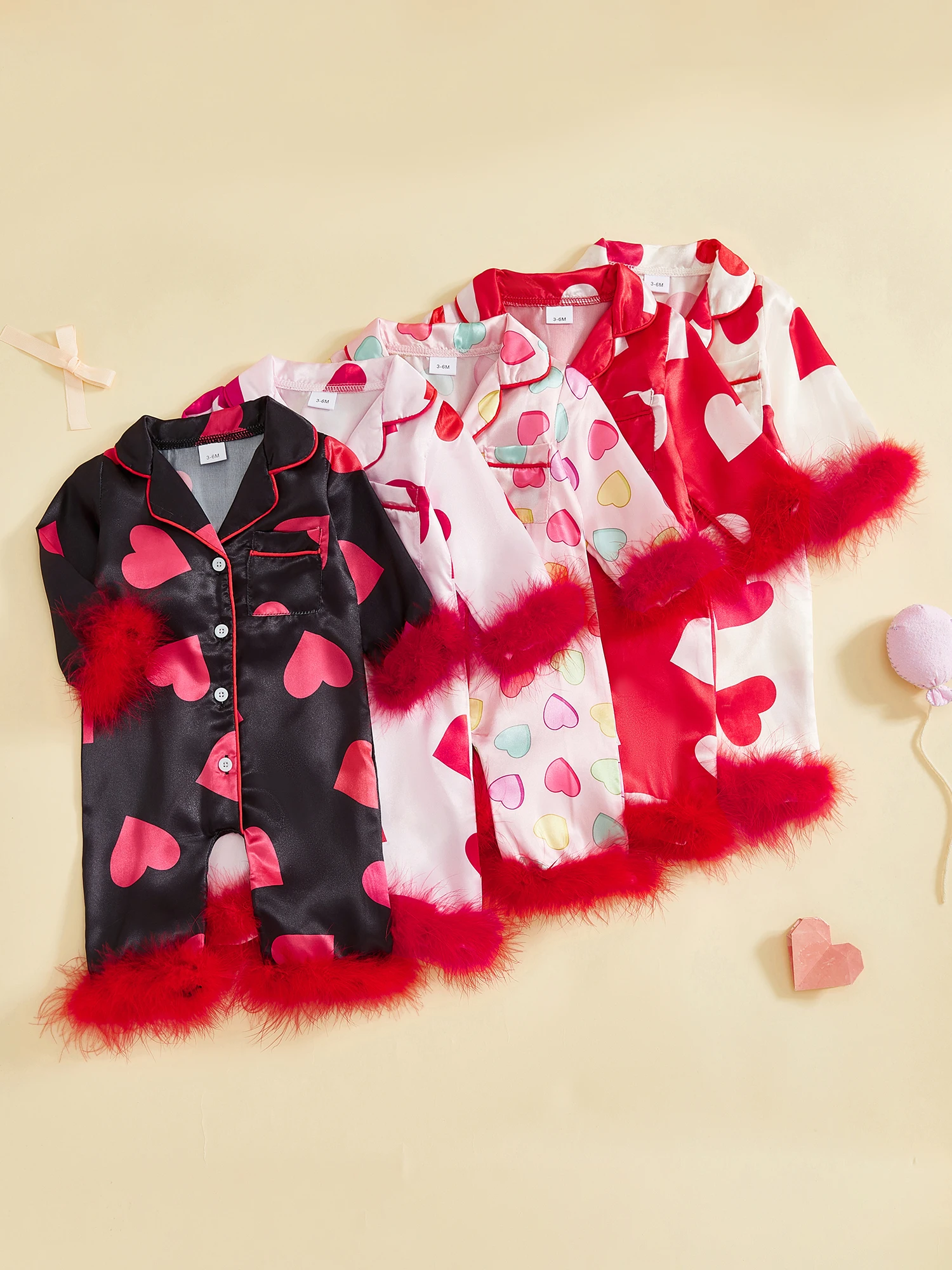 Baby Girl Romper Long Sleeve Lapel Collar Heart Print Jumpsuit Pajamas